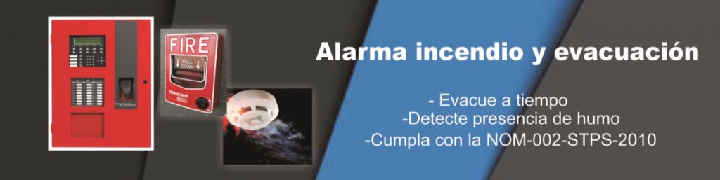 Detección de Incendio y Evacuación.- Es la señal audible y/o visible, diferente a la utilizada en el centro de trabajo para otras funciones, que advierte sobre una emergencia de incendio. Las señales visibles deberán ser del tipo estroboscópico, es decir, con rápidos destellos de luz, de alta intensidad, en forma regular. Requerimiento de la norma oficial mexicana NOM-002-STPS-2010 para cualquier centro de trabajo.