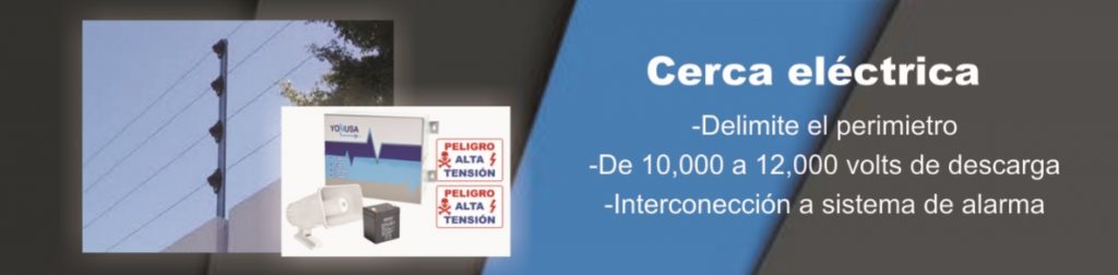 Cerca Eléctrica.- El cercado eléctrico consta de una serie de cables que rodean el perímetro del inmueble, a través de él fluye un voltaje de entre 10,000 y 12,000 volts. Este sistema se utiliza para impedir el acceso a través de bardas perimetrales.